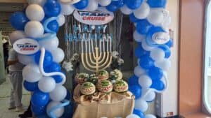 בנר ראשון של חנוכה התכבד להדליק החזן דוד אולמן, בהשתתפות מאות מנוסעי ה"קראון איריס" ששרו את מזמורי החג.